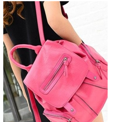 桃紅色的雙肩包,非常搶眼的顏色,同時釋放出無與倫比的女性魅力。而單品的設計比較復古,搭配黑色的連衣裙,讓簡約的服飾瞬間擁有了亮點,因此是個非常明智的穿搭選擇。
