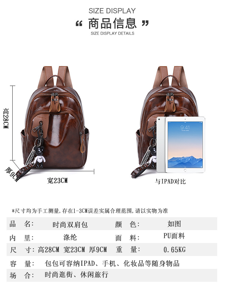 廠家定制新款大容量旅游雙肩包包女潮韓版女士旅行背包百搭書包,時尚經典,簡約的設計風格,大氣的五金搭配,走線勻稱,內部實用,顏色正,質感好。